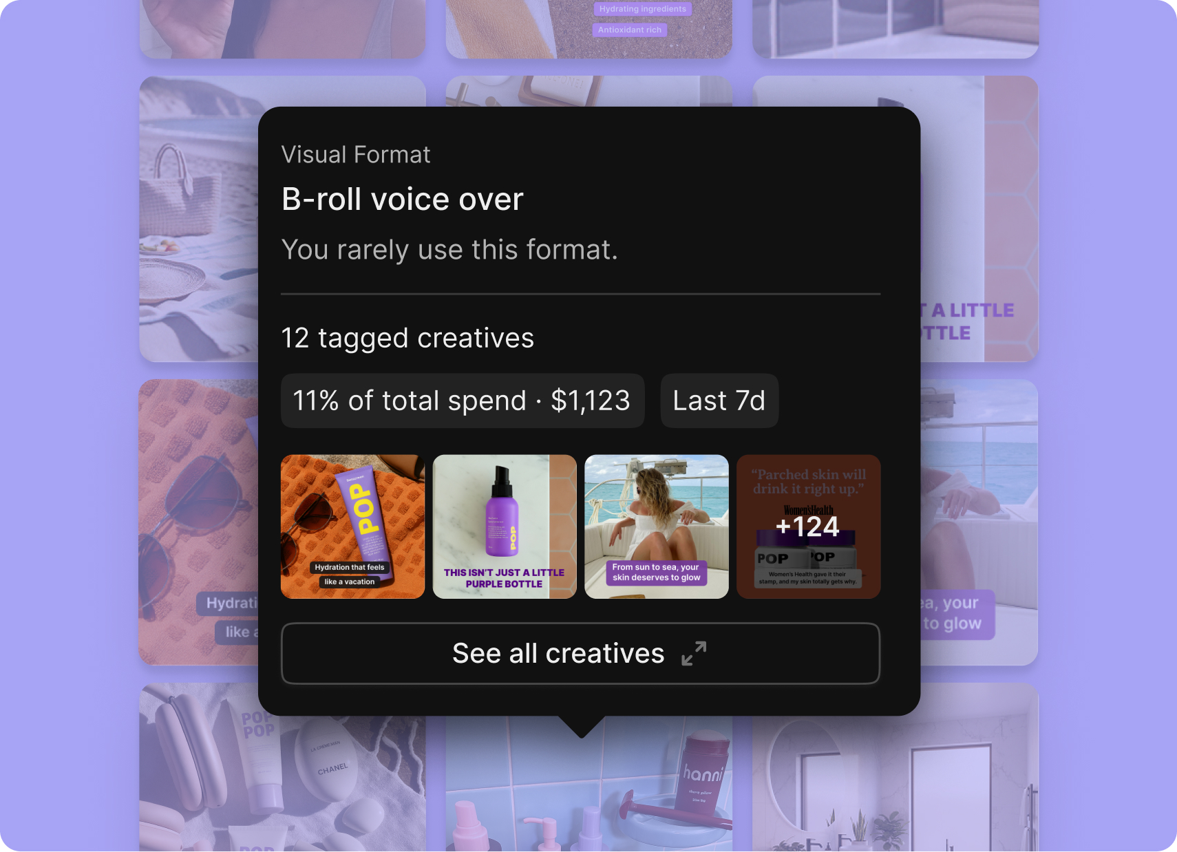 This lets you spot performance trends across creative elements without needing to dig through every creative yourself.
